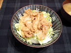 豚のてりやき丼。・・・てりやきになってね~ 千切りの練習もしなければ。